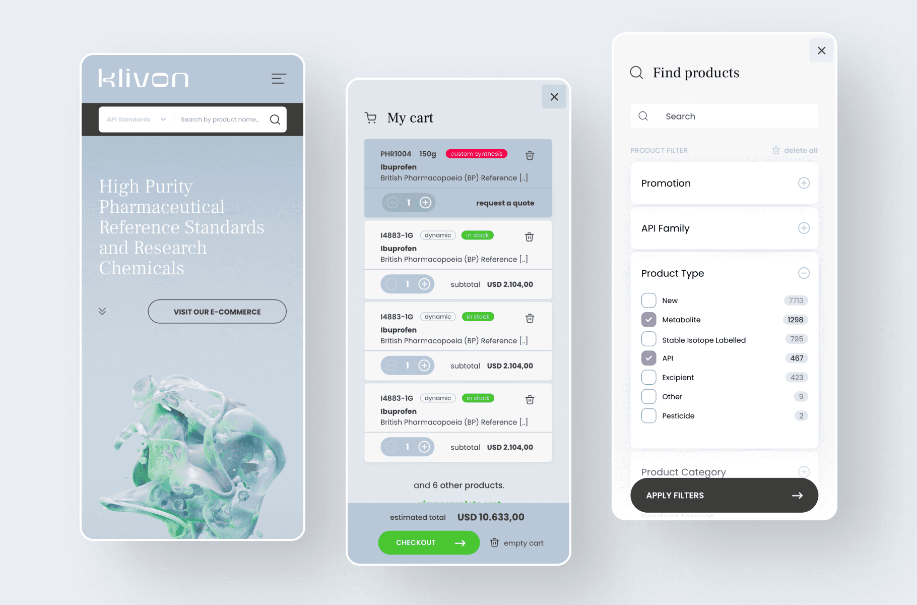 Klivon specializes in supplying chemical components to the pharmaceutical industry, delivering high-quality solutions in full regulatory compliance. The web project was developed with the goal of transforming the digital experience for its clients — from product consultation to the formalization of orders.